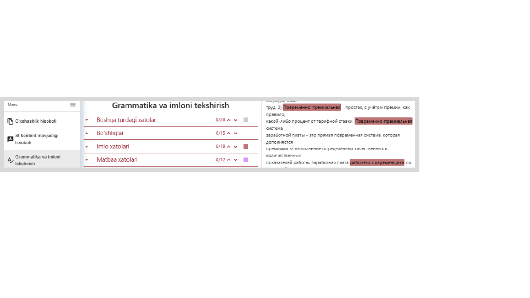 Grammatika tekshiruvi modulimiz haqida ko‘proq bilish uchun: Bu yerga bosing.