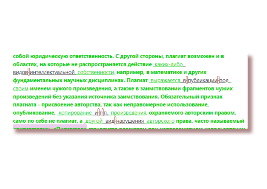 Bundan tashqari, ba’zi talabalar antiplagiat tizimidan qochish uchun grammatika xatolaridan ko‘proq foydalanadilar, masalan, muallif butun matnga xato qo‘shadi, shunda so‘z tartibi buzilib, o‘xshash fragmentlarni topish oldini olinadi.
