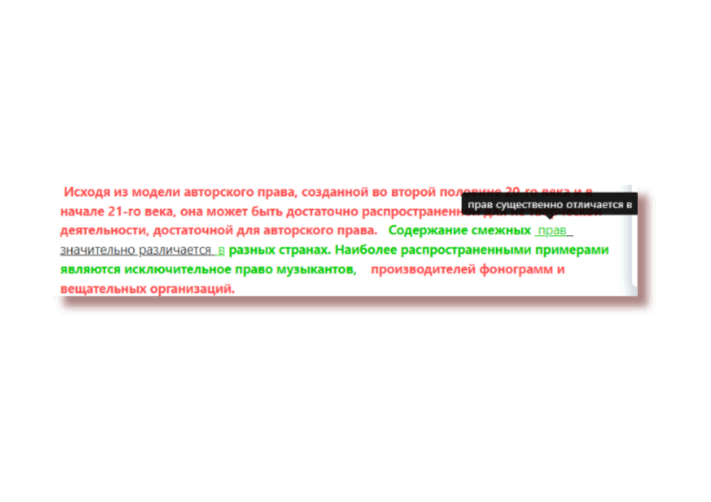 Manbada uchraydigan fragment bilan solishtirganda, o‘zgartirishlar (so‘z tartibini o‘zgartirish, sinonimlardan foydalanish, orfografiyani o‘zgartirish va hokazo) kiritilgan matn fragmentlari va parchalari soni – ushbu funksiya ruxsatsiz nusxalashni yashirishga urinilgan ehtimoliy harakatlarni ko‘rsatadi.