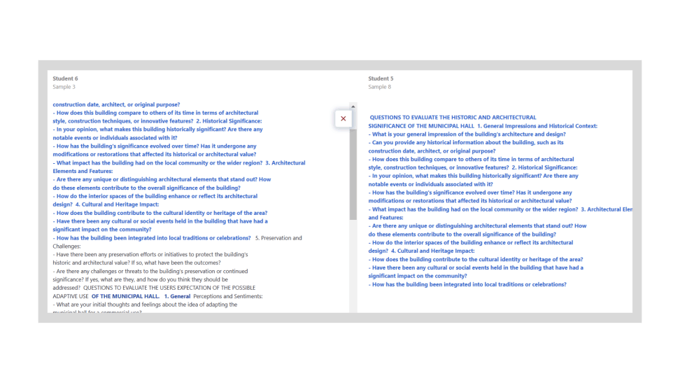 Vazifalarni o‘zaro taqqoslash - bu talabalar va o‘qituvchilarning matn mos kelishlariga e’tibor qaratishiga yordam beradigan vosita.